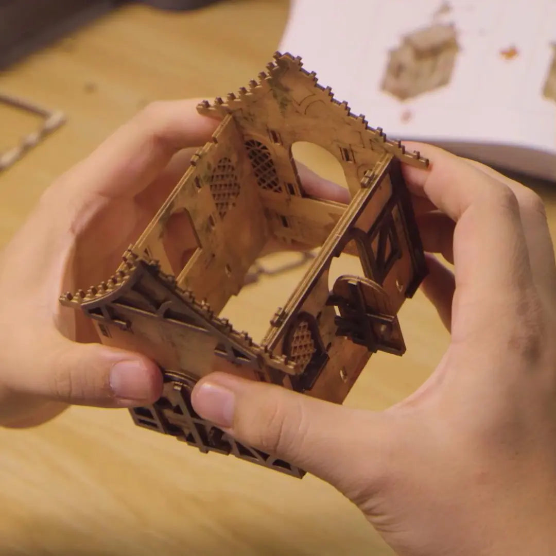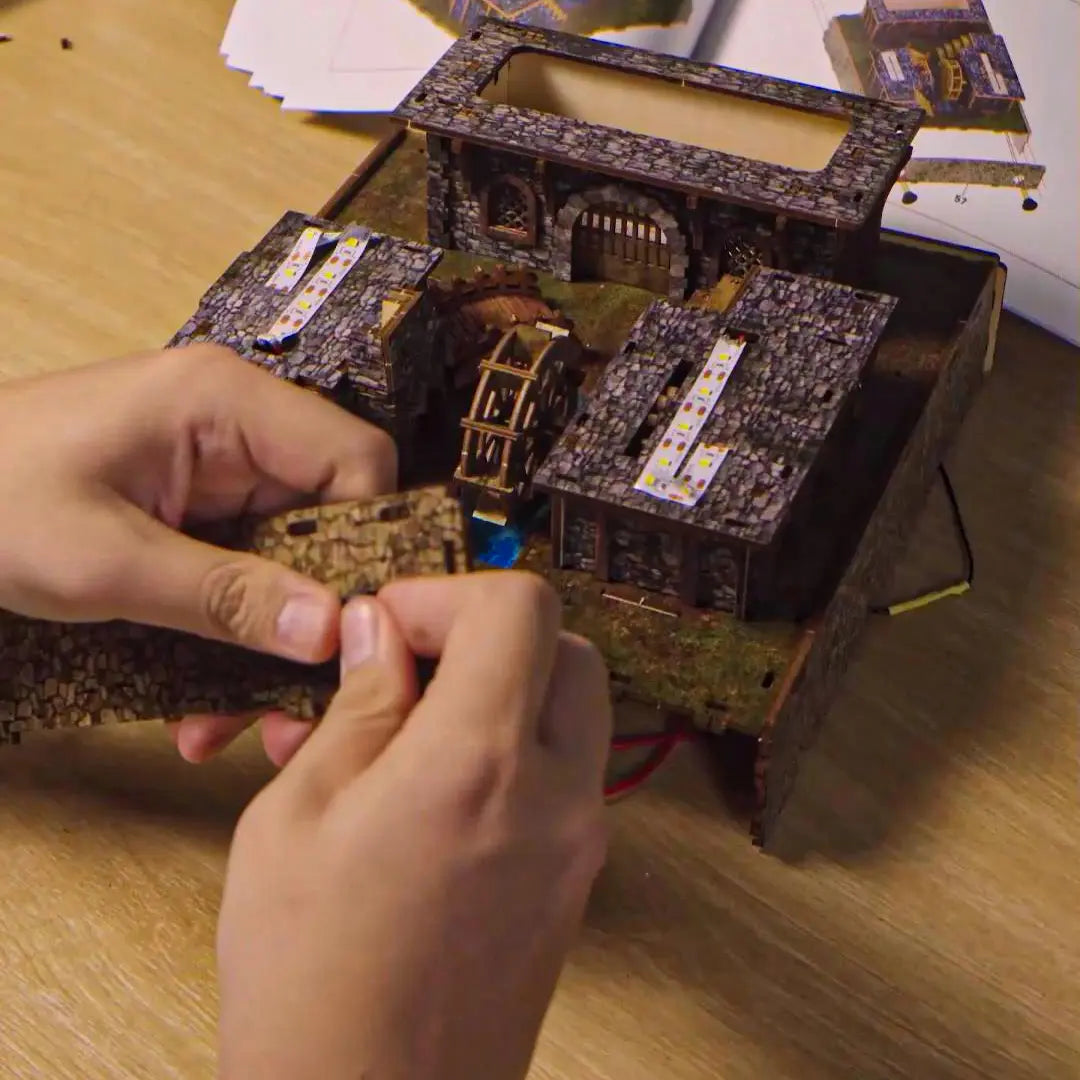 - Danh sách đóng gói: 473 chi tiết gỗ bạch dương, mica (đã cắt sẵn & tô màu), sách hướng dẫn lắp ráp, dây đèn LED, dụng cụ hỗ trợ